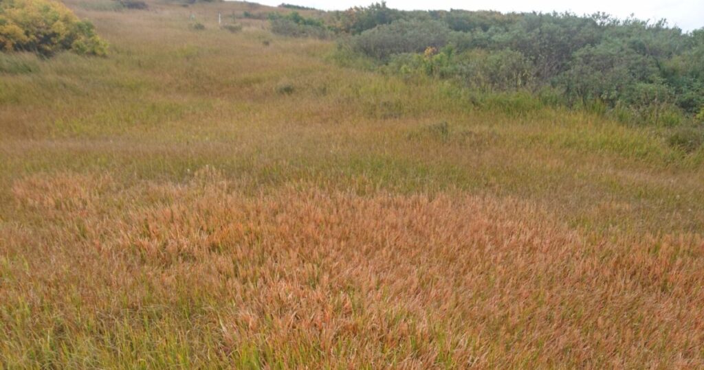 7月下旬に咲いてたキンコウカが草紅葉に変わる。