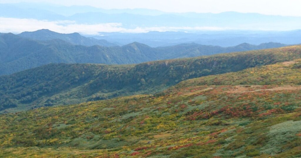 標高1,984mの月山は紅葉のピークを迎える。