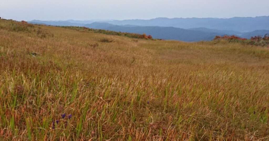 まずは登山口から弥陀ヶ原小屋を目指し、歩くとすぐに弥陀ヶ原の草紅葉の絨毯。