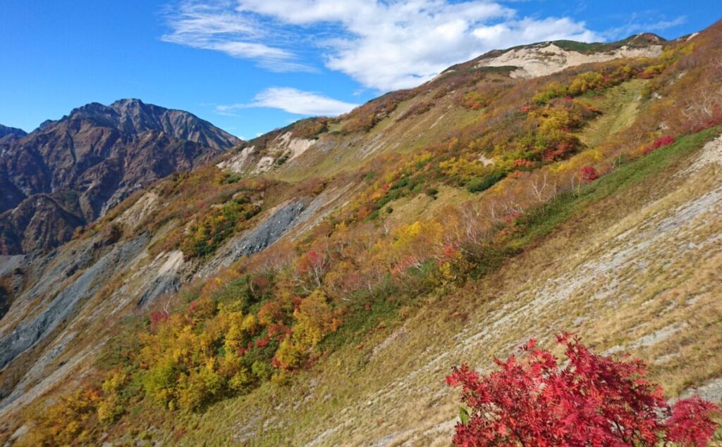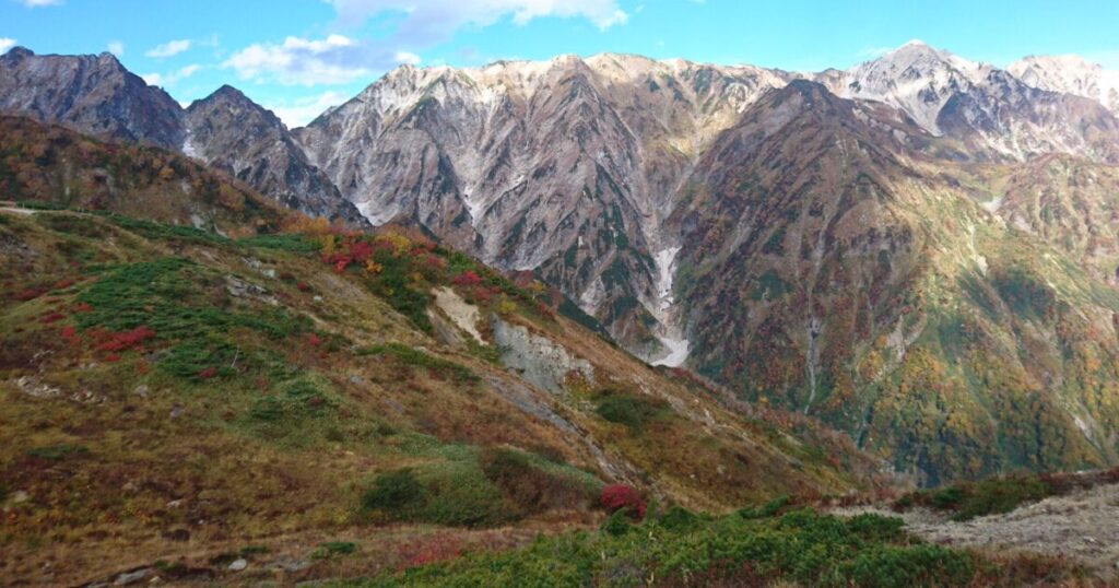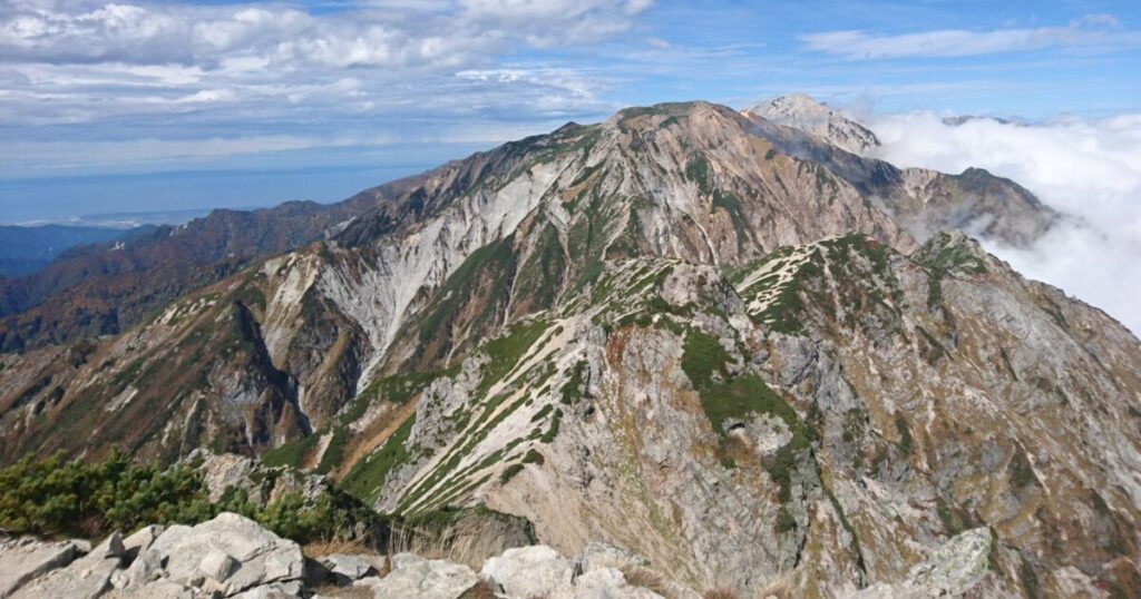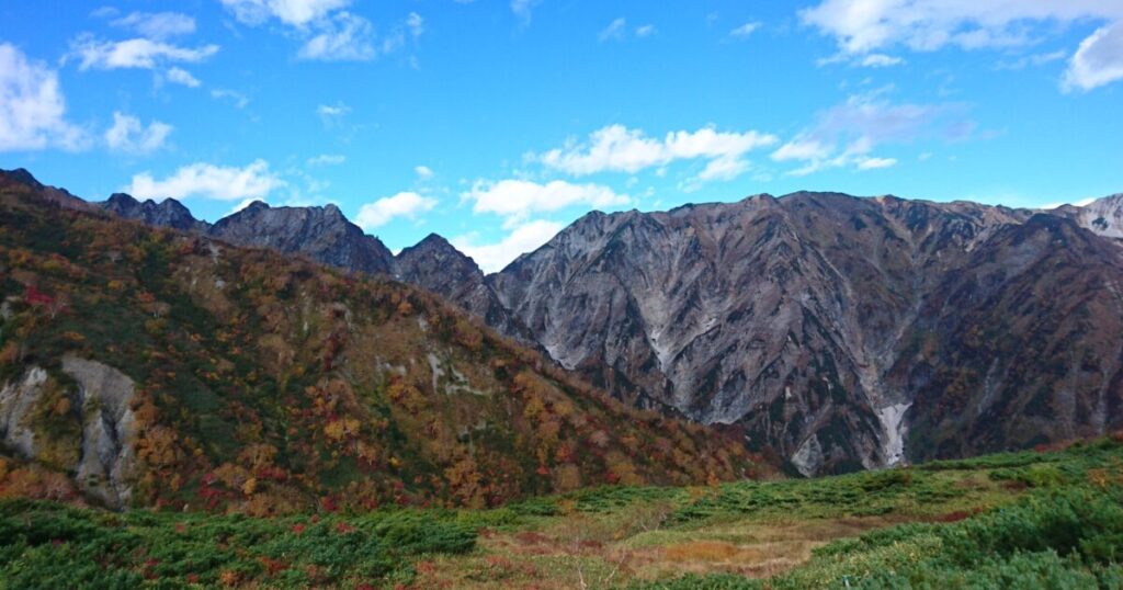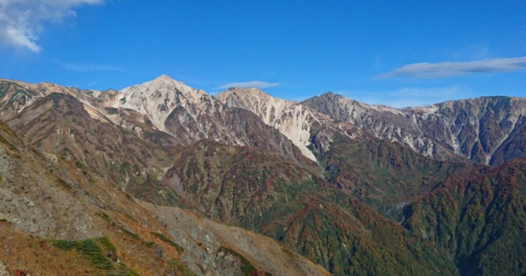 【唐松岳】彫刻のような山肌と黄金色の秋を楽しむ