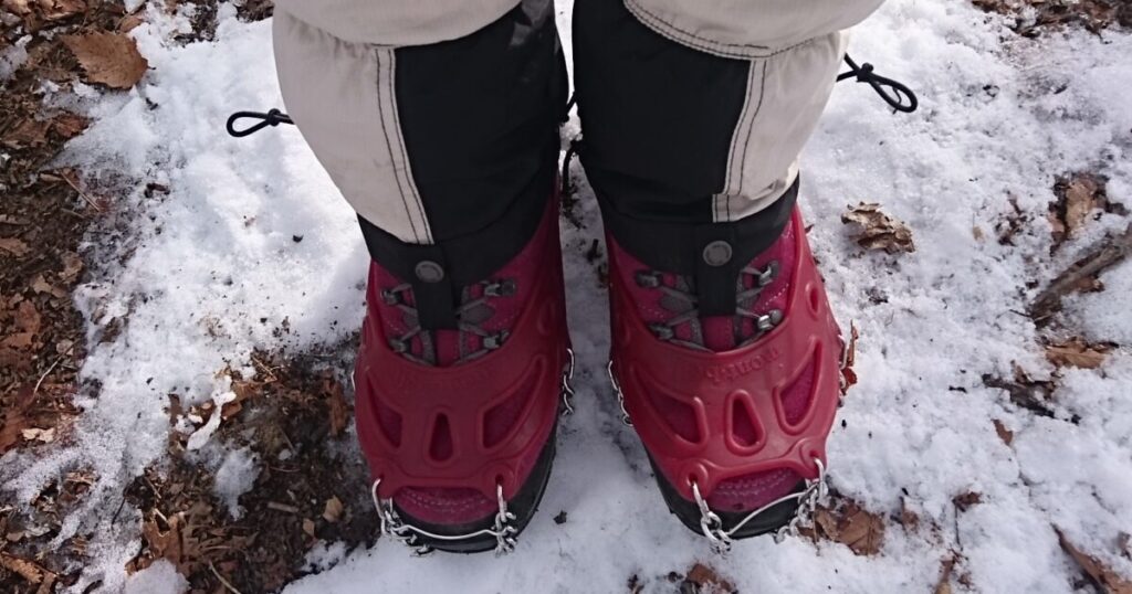 脱いだり履いたりが楽なのがチェーンスパイクなんだよね。