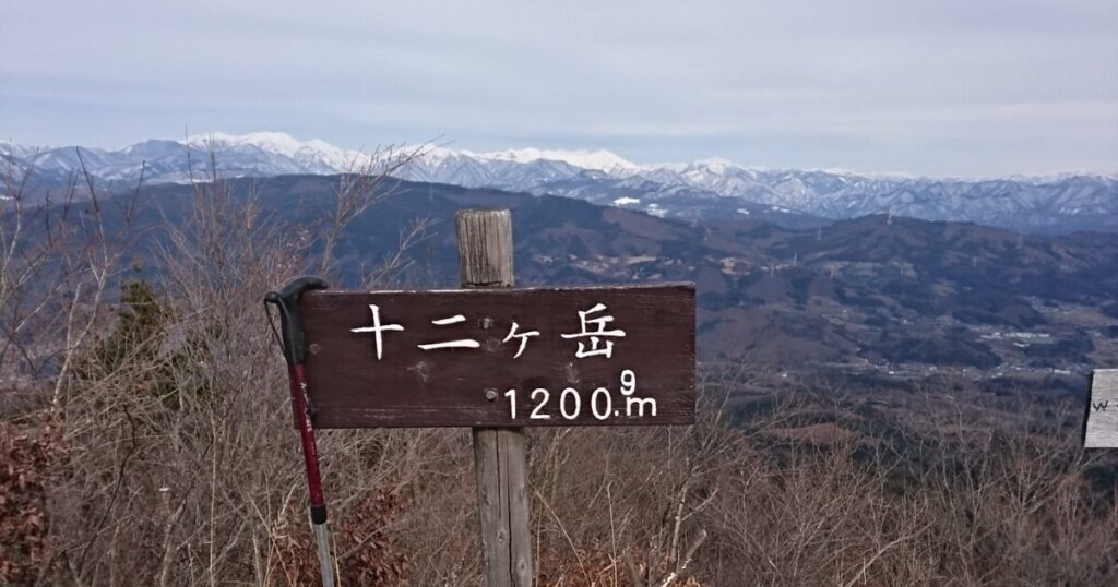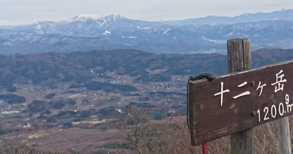 冬山登山に最適な小野子山は標高1,208mで縦走路にある十二ヶ岳の山頂からの眺めは最高
